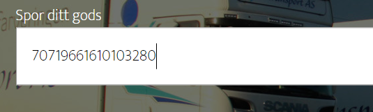 - Dere mottar en transportmelding på e-post. Denne inneholder et fraktbrevnummer, og dette kan spores hos vår transportør JK Transport www.jktransport.no. Legg inn fraktbrevnummeret i søkefeltet å trykk søk. Se eksempel under: